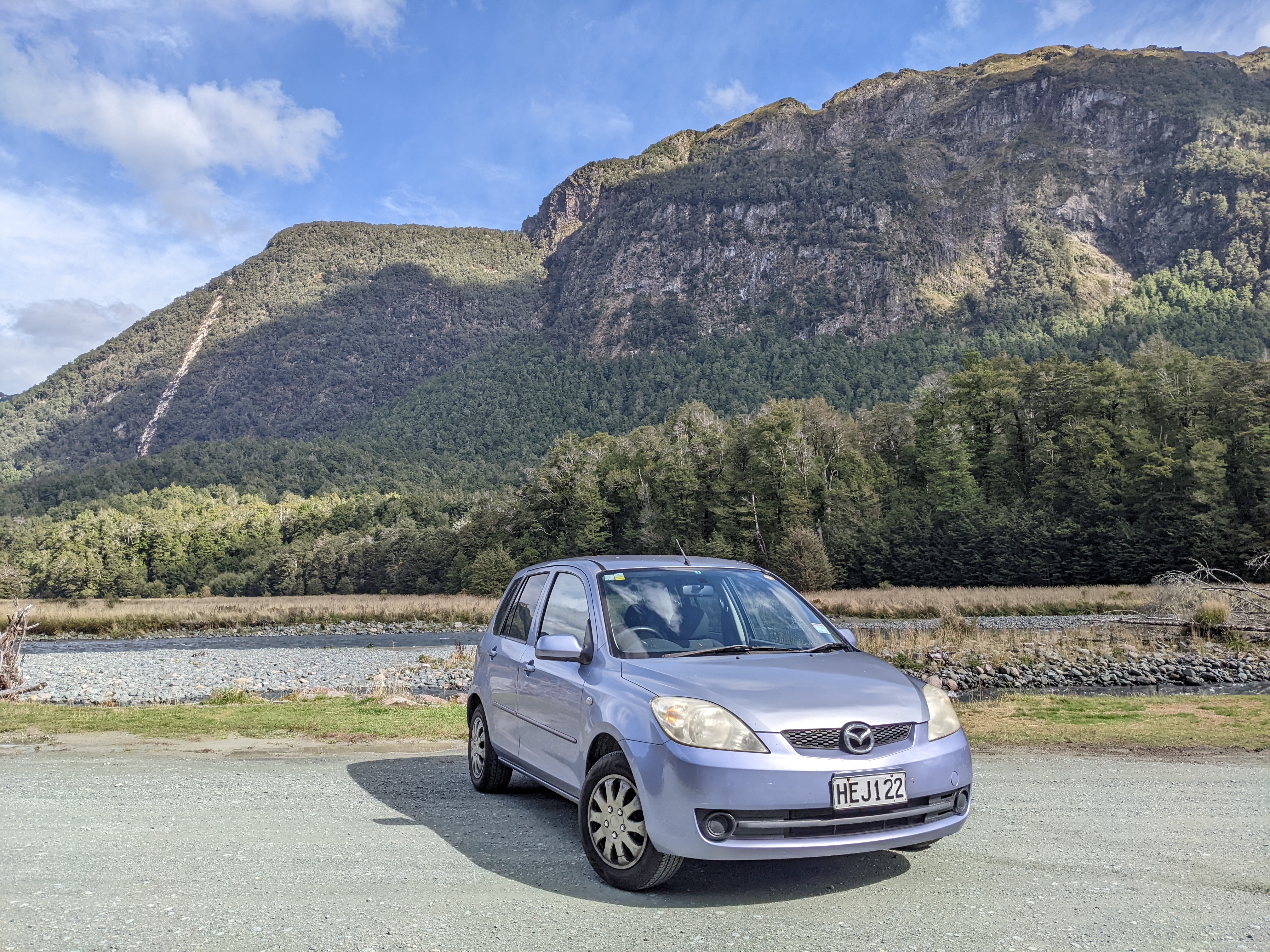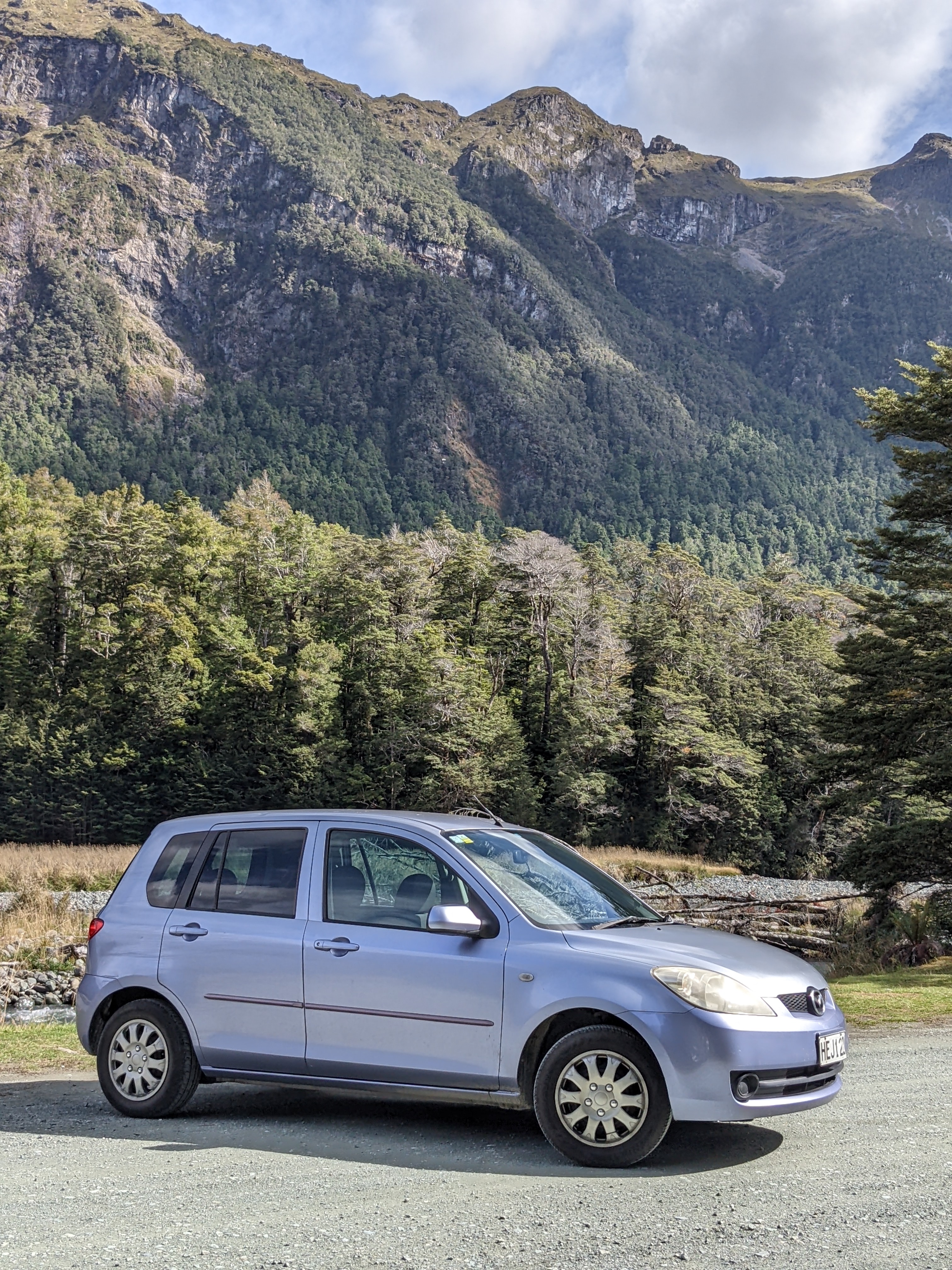 The type of car you buy will hinge on a few factors. Namely: price, condition, engine size, drive type, and gas mileage. We wanted a small car that was good on gas more than we wanted the ability to go off-road or sleep in the back. So we went with a 2006 Mazda Demio. I loved this little car and it really did us well on our journey. The downsides of it were the engine size, which at 1500cc struggled to get up some of the steeper hills and mountain passes. However, we kept passing the Jucy vans, so we were doing better than some.