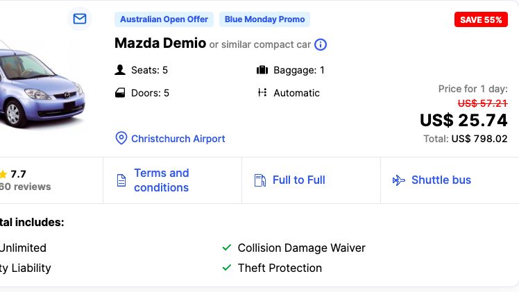 Depending on the vehicle, you may also need to register the car and get a WOF (Warranty of Fitness). I didn’t want to bother with either of these, so I looked for vehicles with On Road costs included. Sites like TradeMe will allow you to search for vehicles with On Road costs included, and even listings on Facebook Marketplace will mention whether or not you’ll need to get these things in order before you are road ready.