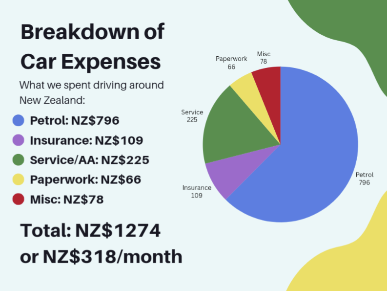 For example, to rent our exact car for one month would cost around $800 USD or NZD $1300. That means for the time we had it, it would’ve cost $5200 NZ to rent, with no recourse to get any of our money back by reselling at the end. This also doesn’t include the biggest expense of having the car, which is petrol.